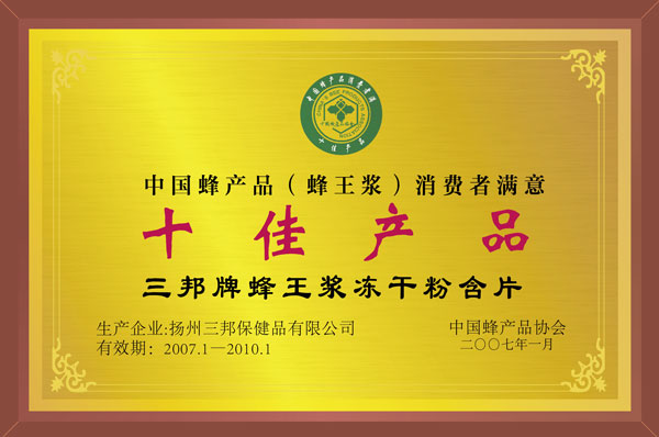 中國蜂產(chǎn)品消費(fèi)者滿意十佳產(chǎn)品